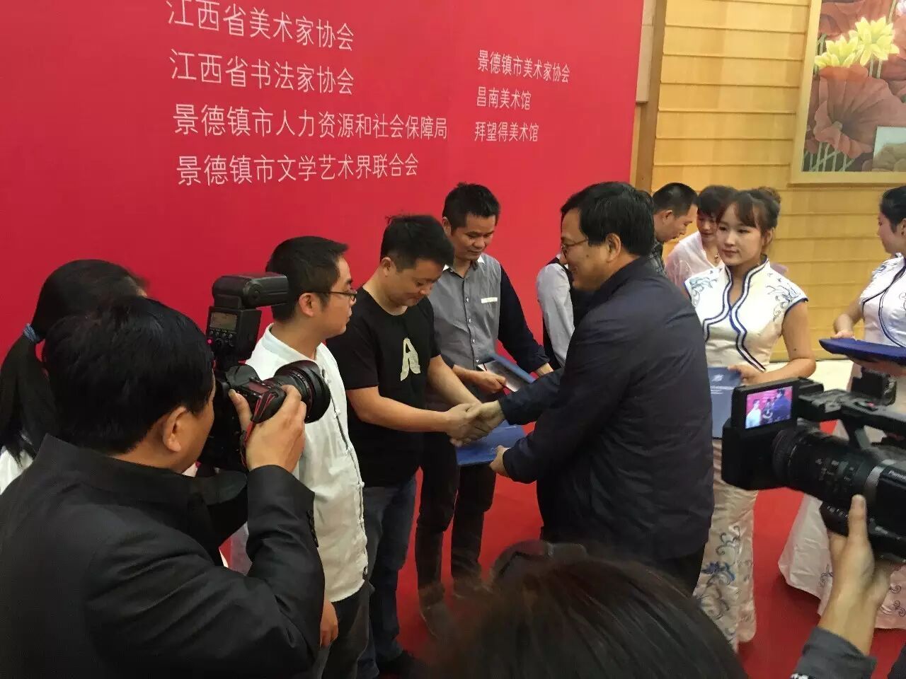 ▲ 景德镇市人大主任余乐明为获奖者颁奖