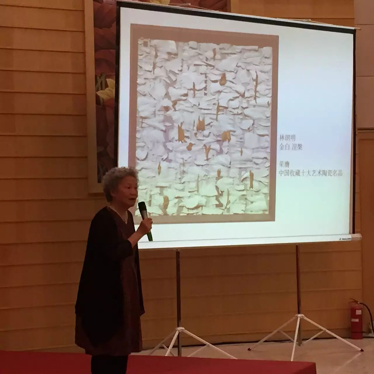 ▲ 作为本届评选活动的评委,中国工艺美术学会原副理事长唐克美女士在向嘉宾及与会者们点评部分获奖作品。