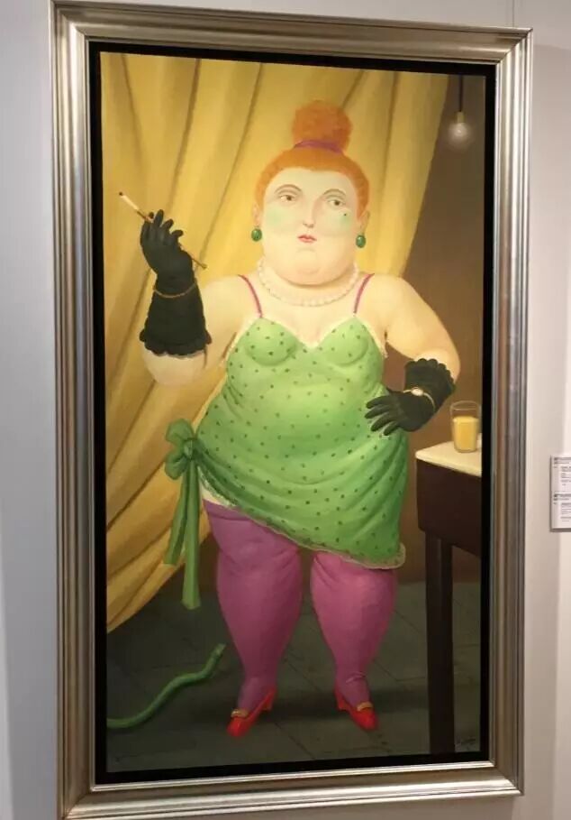 ▲ 费尔南多·波特罗作于1992年的《穿绿色裙子的女人》,估价为60万至80万美元。波特罗在画布上以他典型的诙谐“可爱”风格表现了一个古老的宗教主题:蛇对夏娃的诱惑。
