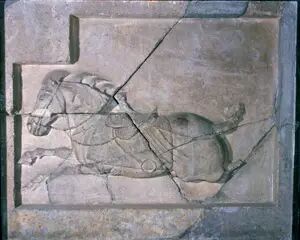 2003年,“昭陵六骏”继续续写着他们的传奇。一处规模宏大的昭陵建筑群遗址展现在了世人眼前,主要包括清代祭灵和北司马门建筑群遗址。这里出土了唐代及明清两代大量的建筑构件,还有明清祭祀碑八通,最重要的是还发现了唐代和清代曾经摆放“昭陵六骏”的两处基座。两处基座的出土,对研究唐朝陵寝形制和工艺有重大的意义。在台基上边的土层中,考古学家还有一个令人激动不已的发现——三块“昭陵六骏”的残片。这三方石块并没有明显的风化情况,从石质看,要比流传至今的“昭陵六骏”主体,完好许多。